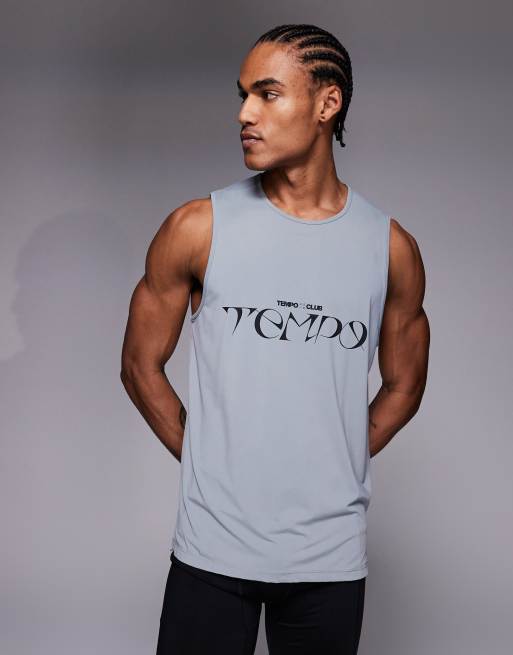 4505 - Débardeur de course imprimé en tulle de nylon technique à séchage rapide - Gris froid