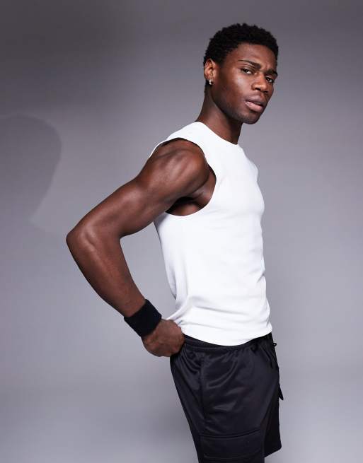 4505 - Débardeur de sport côtelé coupe slim sans coutures style années 90 - Blanc