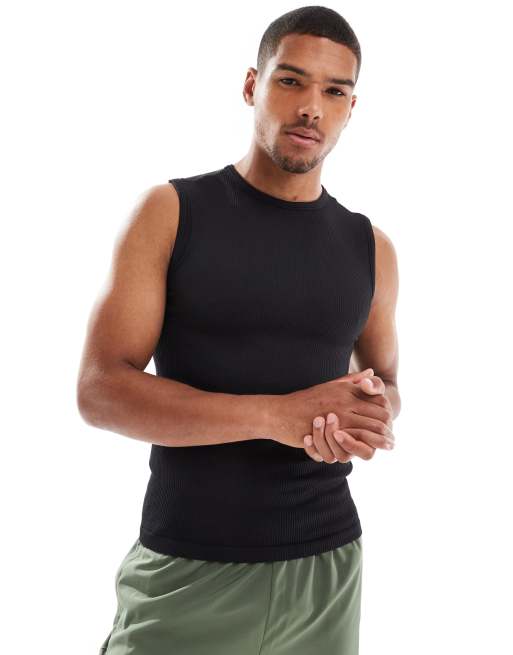 4505 - Débardeur de sport côtelé coupe slim sans coutures style années 90 - Noir