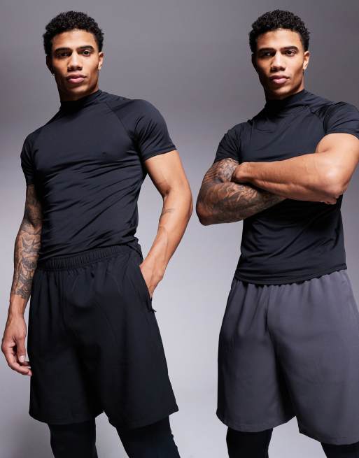 4505 - Icon - Lot de 2 shorts de sport 18 cm à séchage rapide avec poche zippée - Noir/anthracite
