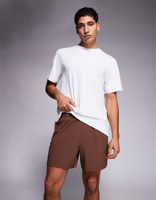 4505 - Icon - Short de sport 13 cm en tissu à séchage rapide avec poches zippées - Marron