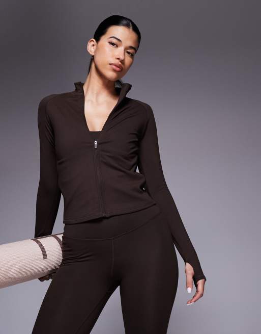 4505 - Icon - Top de sport doux à manches longues et fermeture éclair - Chocolat
