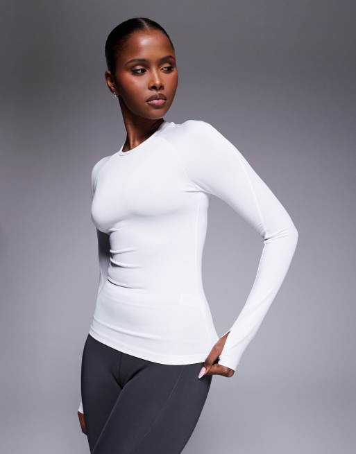 4505 - Icon - Top slim de sport à manches longues en tissu à séchage rapide - Blanc