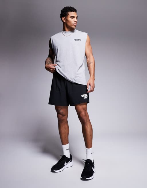 4505 - Short de sport ample en tissu à séchage rapide avec motif et poches zippées - Noir