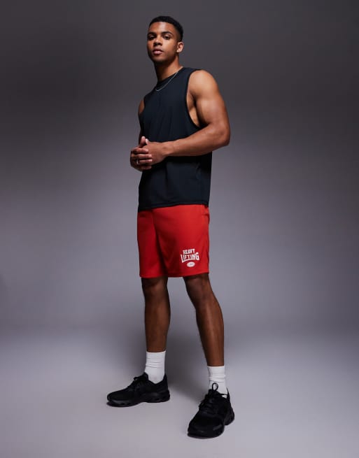 4505 - Short de sport en mesh à motif Heavy Lifting - Rouge