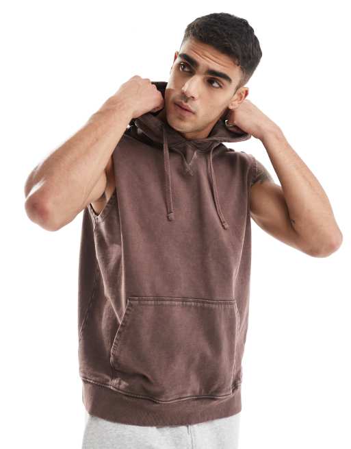 4505 - Sweat à capuche de sport sans manches oversize à séchage rapide - Marron délavé