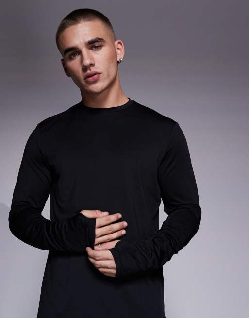 4505 - T-shirt de course à manches longues coupe classique à séchage rapide - Noir