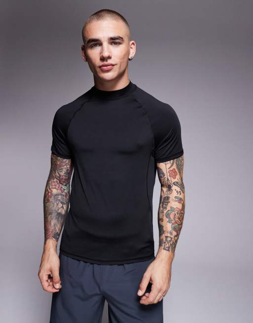 4505 - T-shirt de sous-vêtement moulant à col montant et surpiqûres en tissu séchage rapide - Noir
