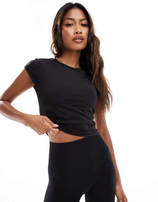 4505 - T-shirt de sport raccourci à mancherons - Noir