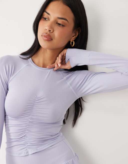4505 - Top de running léger avec manches longues et fronces à l'avant - Pervenche