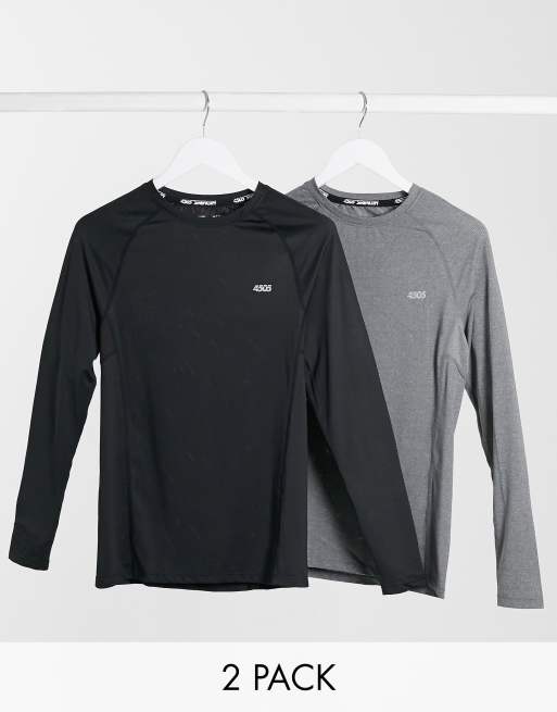 ASOS 4505 - Icon - Lot de 2 t-shirts moulants manches longues à logo emblématique avec système de séchage rapide