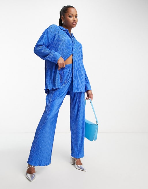 4th & Reckless Petite - Ensemble avec chemise plissée et pantalon large - Bleu électrique