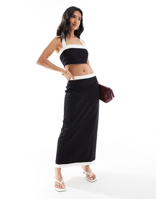 4th & Reckless Petite - Jupe longue d'ensemble aspect lin à bord contrastant - Noir et blanc