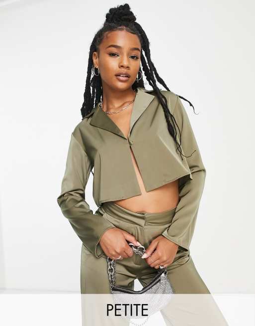 Exclusivité - 4th & Reckless Petite - Chemise d'ensemble en satin avec fermoir - Kaki
