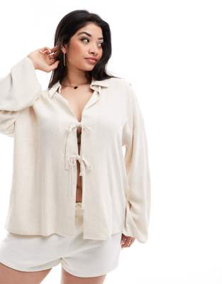 4th & Reckless Plus - Chemise en lin avec liens devant - Beige