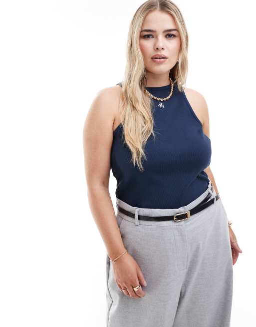 4th & Reckless Plus - Débardeur côtelé dos nageur à logo brodé - Bleu marine