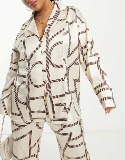 4th & Reckless Plus - Exclusivité - Chemise d'ensemble boutonnée devant en satin imprimé - Crème