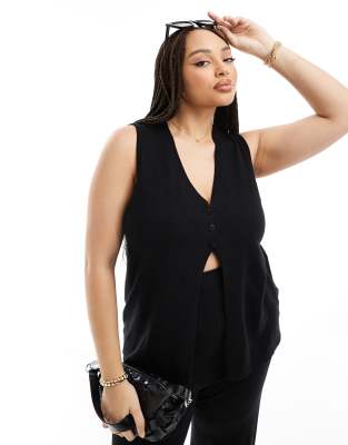 4th & Reckless Plus - Exclusivité - Gilet de tailleur long en maille pointelle à motif - Noir