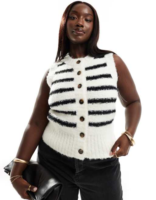 4th & Reckless Plus - Exclusivité - Top sans manches boutonnée en maille duveteuse à rayures - Noir et blanc