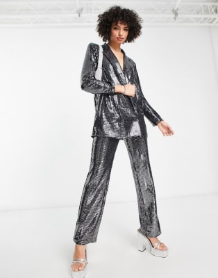 4th & Reckless Tall - Ensemble orné de sequins avec blazer ajusté et pantalon - Argenté
