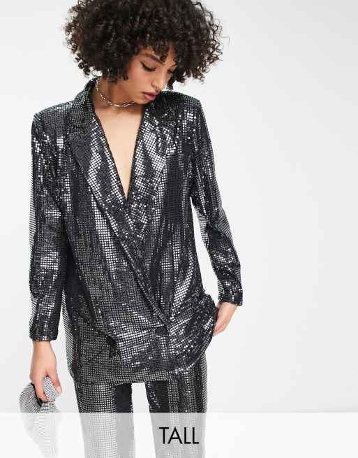 4th & Reckless Tall - Exclusivité - Blazer d'ensemble habillé à sequins - Argenté métallisé