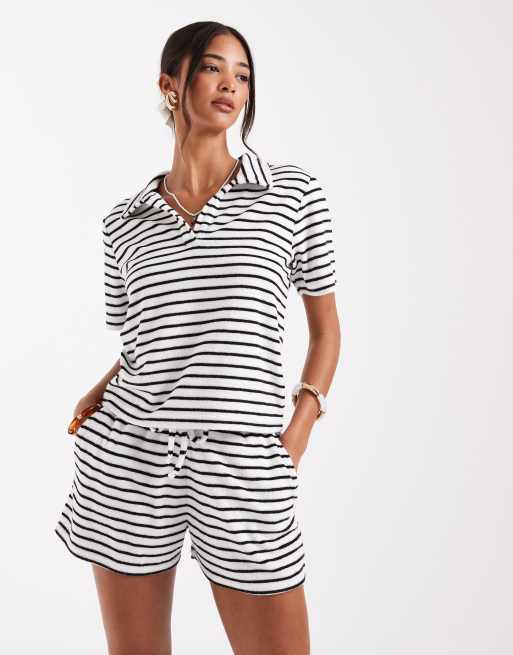 4th & Reckless - Ensemble avec polo et short style caleçon à rayures en tissu éponge - Noir et blanc