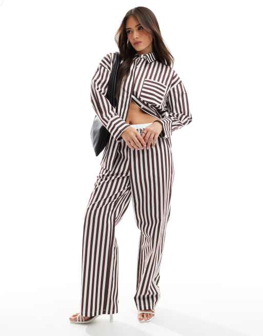 4th & Reckless - Ensemble chemise oversize en lin mélangé avec poche et pantalon large - Marron à rayures