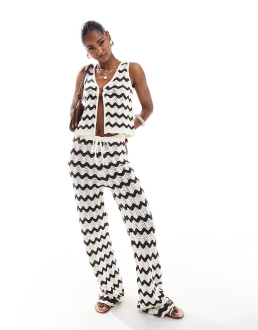 4th & Reckless - Ensemble de plage en maille crochetée ondulée avec top et pantalon - Crème et chocolat