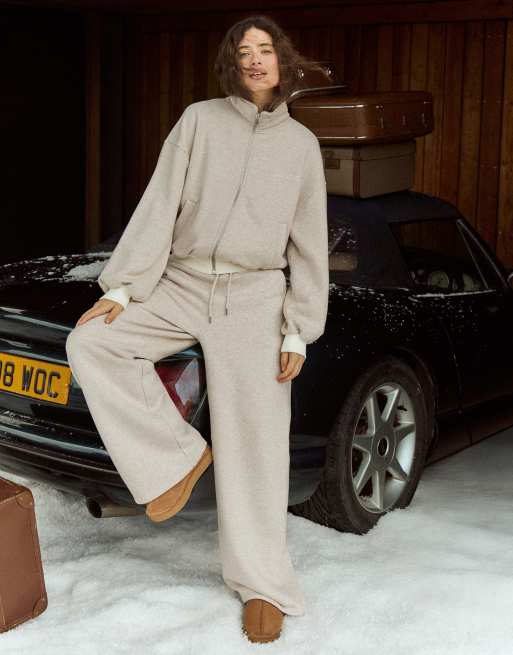 4th & Reckless - Ensemble en coton mélangé avec pantalon de jogging décontracté ample et sweat zippé à col cheminée - Grège chiné