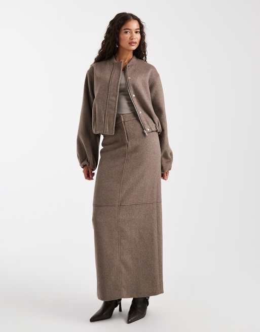 4th & Reckless - Jupe d'ensemble longue et ajustée en laine mélangée douce au toucher avec surpiqûres - Moka