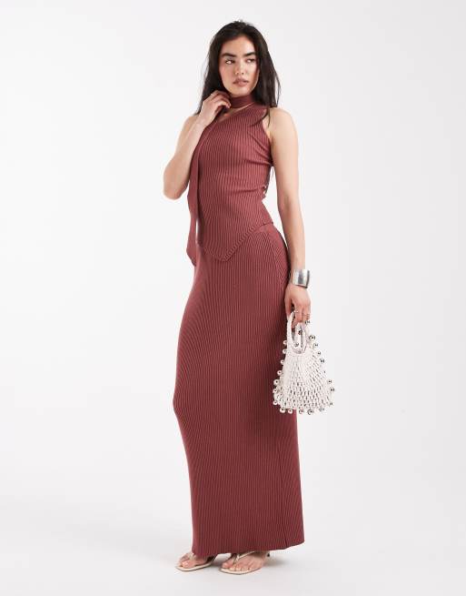 4th & Reckless - Jupe longue en maille côtelée d'ensemble - Rouille