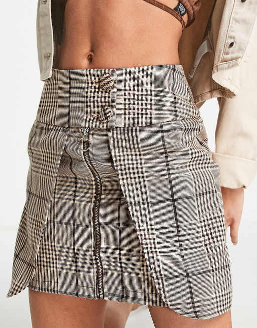 4th & Reckless - Mini-jupe portefeuille à carreaux - Taupe