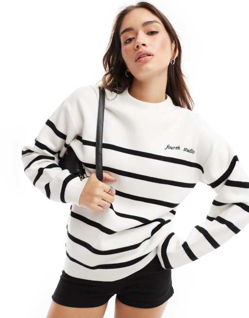 4th & Reckless - Pull ras de cou en maille à rayures - Crème