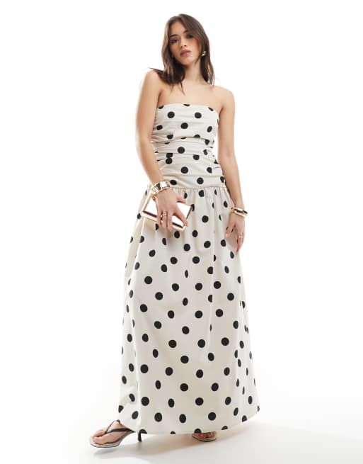 4th & Reckless - Robe bandeau longue à fronces avec taille basse en lin mélangé - Crème à pois
