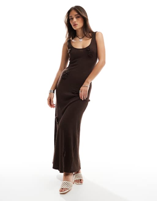 4th & Reckless - Robe en maille avec fleurs crochetées - Marron