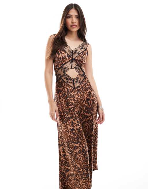 4th & Reckless - Robe mi-longue en dentelle et satin à découpe - Imprimé léopard