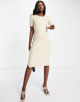 4th & Reckless - Robe mi-longue en maille à dos ouvert - Grège