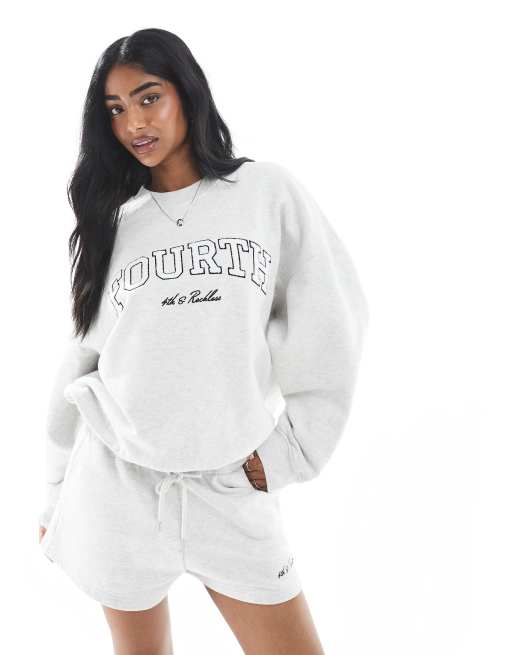 4th & Reckless - Short d'ensemble en coton bouclé avec logo brodé - Gris
