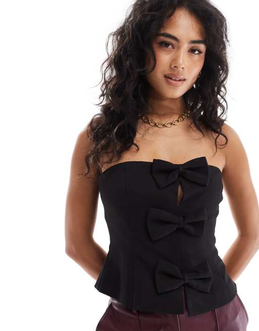 4th & Reckless - Top corset bandeau avec détail nœud - Noir