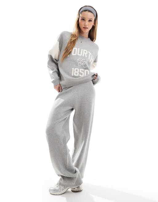 4th & Reckless x Felicia Wedin - Après Ski - Ensemble en maille avec pull à manches contrastantes et logo Fourth 1850 et pantalon - Gris