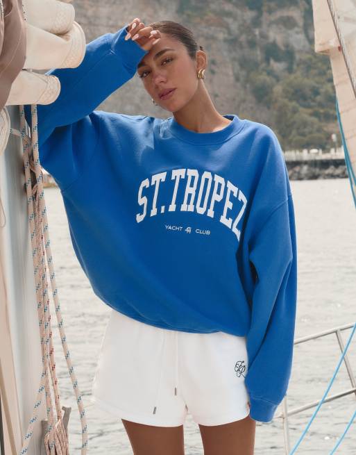 4th & Reckless X Luana Barron - Ines - Sweat avec slogan St.Tropez - Bleu