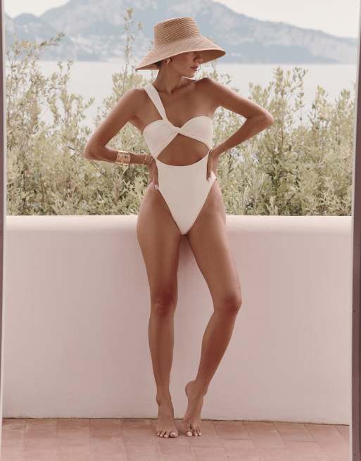 4th & Reckless x Luana Barron - Maillot 1 pièce avec découpe et détail torsadé à l'avant - Crème