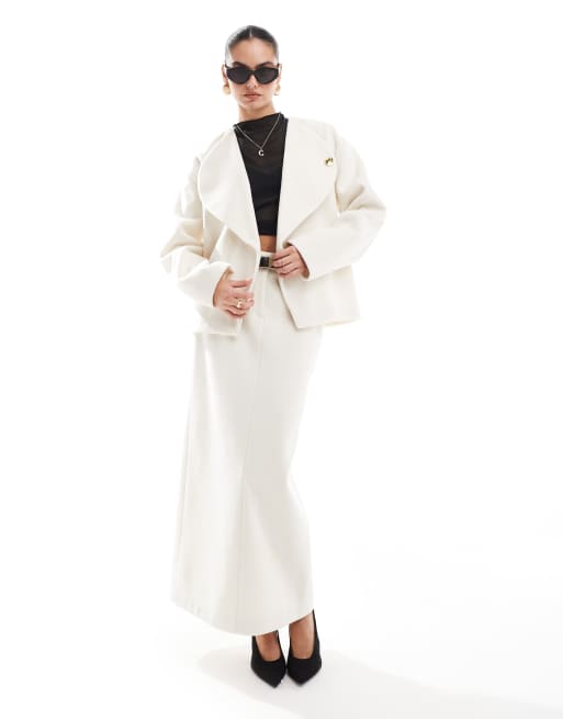 4th & Reckless - Ensemble en aspect laine avec jupe longue et veste oversize à revers - Crème