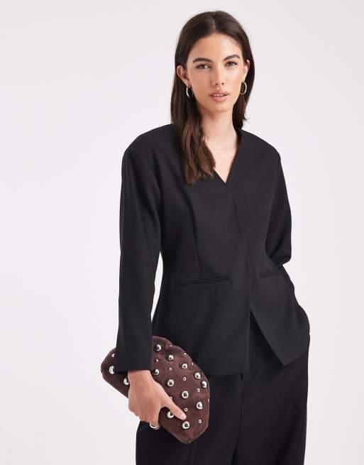 Exclusivité - 4th & Reckless - Blazer sans col avec manches cocon et taille cintrée - Noir