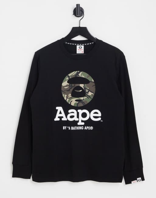AAPE by A Bathing Ape - Top à manches longues avec imprimé visage rond style camouflage - Noir