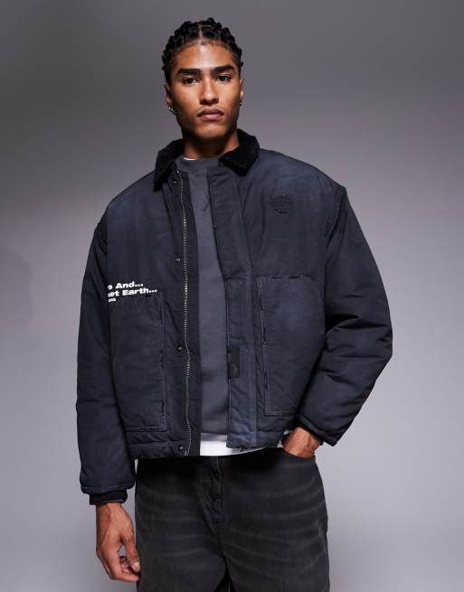 Aape by A Bathing Ape - Veste camionneur style workwear coupe carrée - Noir denim surteint