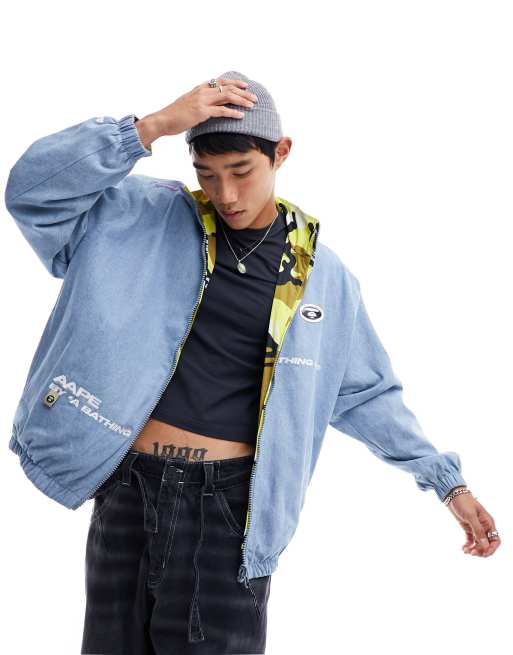 AAPE By A Bathing Ape - Veste de survêtement oversize réversible style skateur - Bleu jean/imprimé camouflage