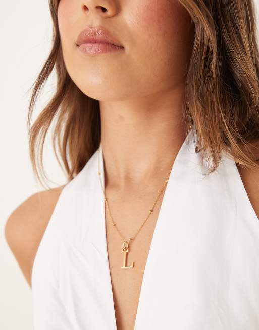 Abbott Lyon - Collier en acier inoxydable étanche plaqué or 18 carats avec initiale « L »