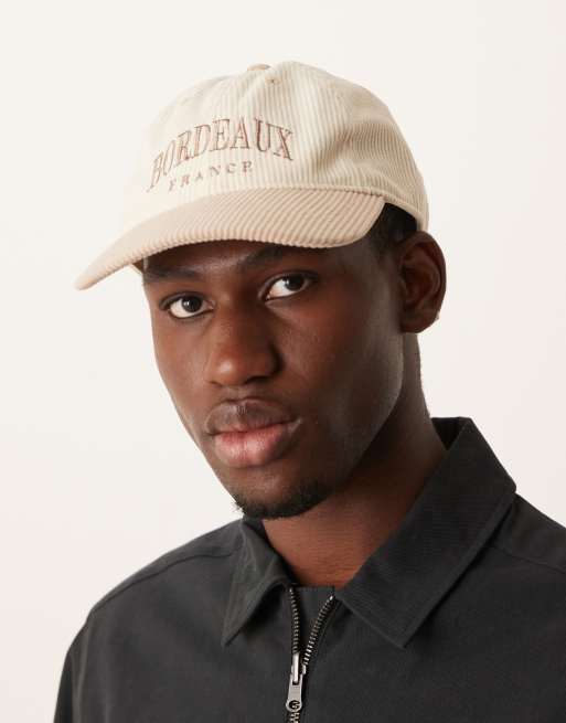 Abercrombie & Fitch - Casquette de baseball dad en velours côtelé avec inscription « Bordeaux » - Beige