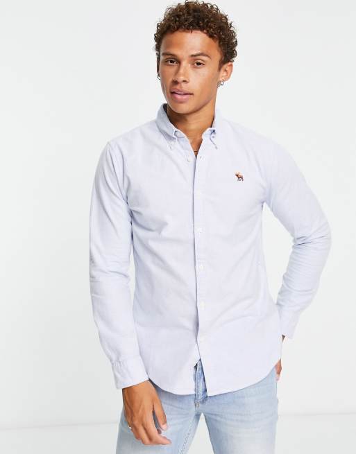 Abercrombie & Fitch - Chemise Oxford à logo emblématique en 3D - Bleu clair